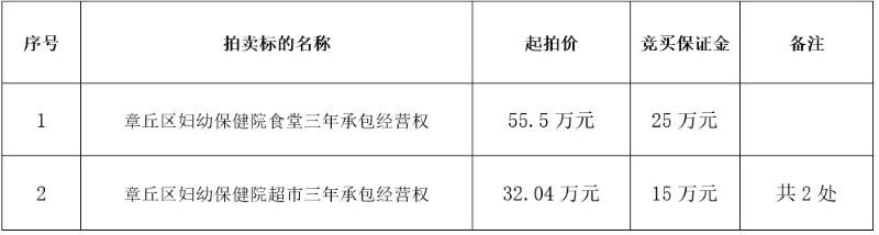 章丘区妇幼保健院食堂及超市三年承包经营权拍卖公告