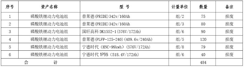 484辆新能源公交车淘汰动力电池组拍卖公告