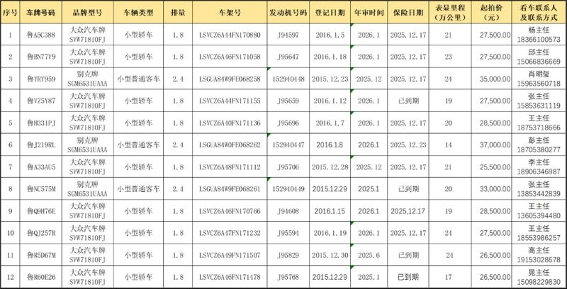 全省12辆公务用车拍卖公告