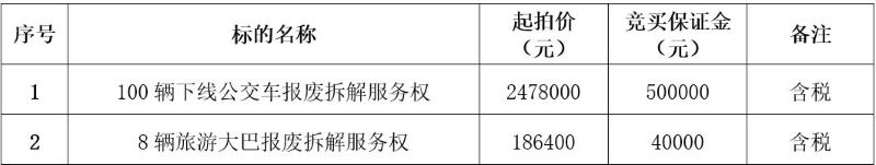 100辆下线公交车及8辆旅游大巴报废拆解服务权拍卖公告