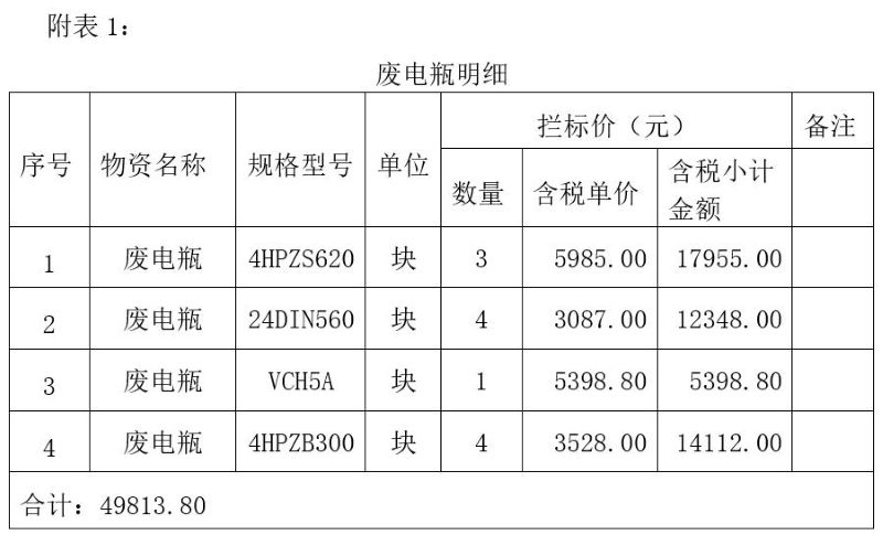 受委托,我公司将于 2025年11月28日9:00在中拍平台举行废电瓶、废机油、废铁等闲废物资一宗拍卖会。详见标的清单,本次拍卖采用网络拍卖的方式举行。