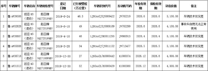 受委托,我公司将于2026年3月24日15:00在济南公共资源交易中心电子交易系统公开拍卖 6 辆下线出租车 。详见标的清单,本次拍卖采用网络拍卖的方式举行。