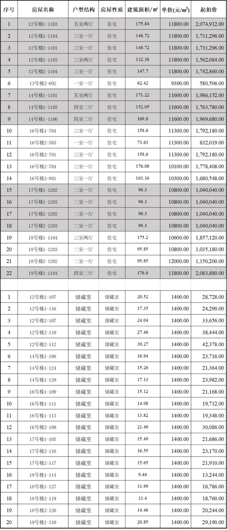 伟东新都四区22套房产及20套地下室拍卖公告