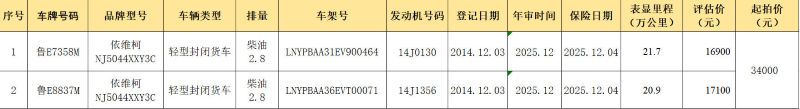 [东营] 依维柯牌货车两辆拍卖公告