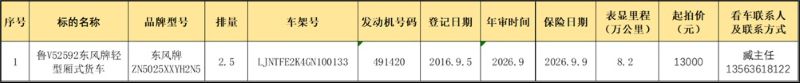 [潍坊] 东风牌轻型厢式货车拍卖公告