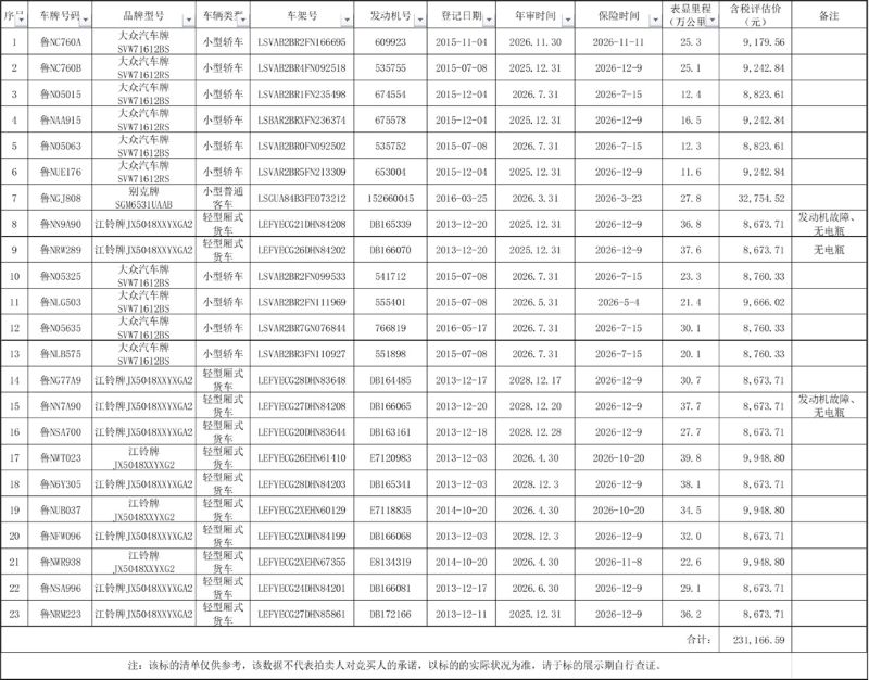 [德州] GL8、新款桑塔纳、江铃厢式货车等二手车辆一宗拍卖公告